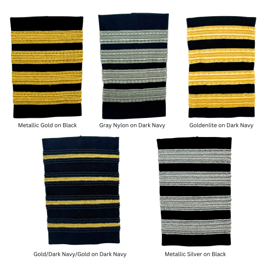 Sold as a pair. Choose your epaulet background color (black or dark navy) and braid color.